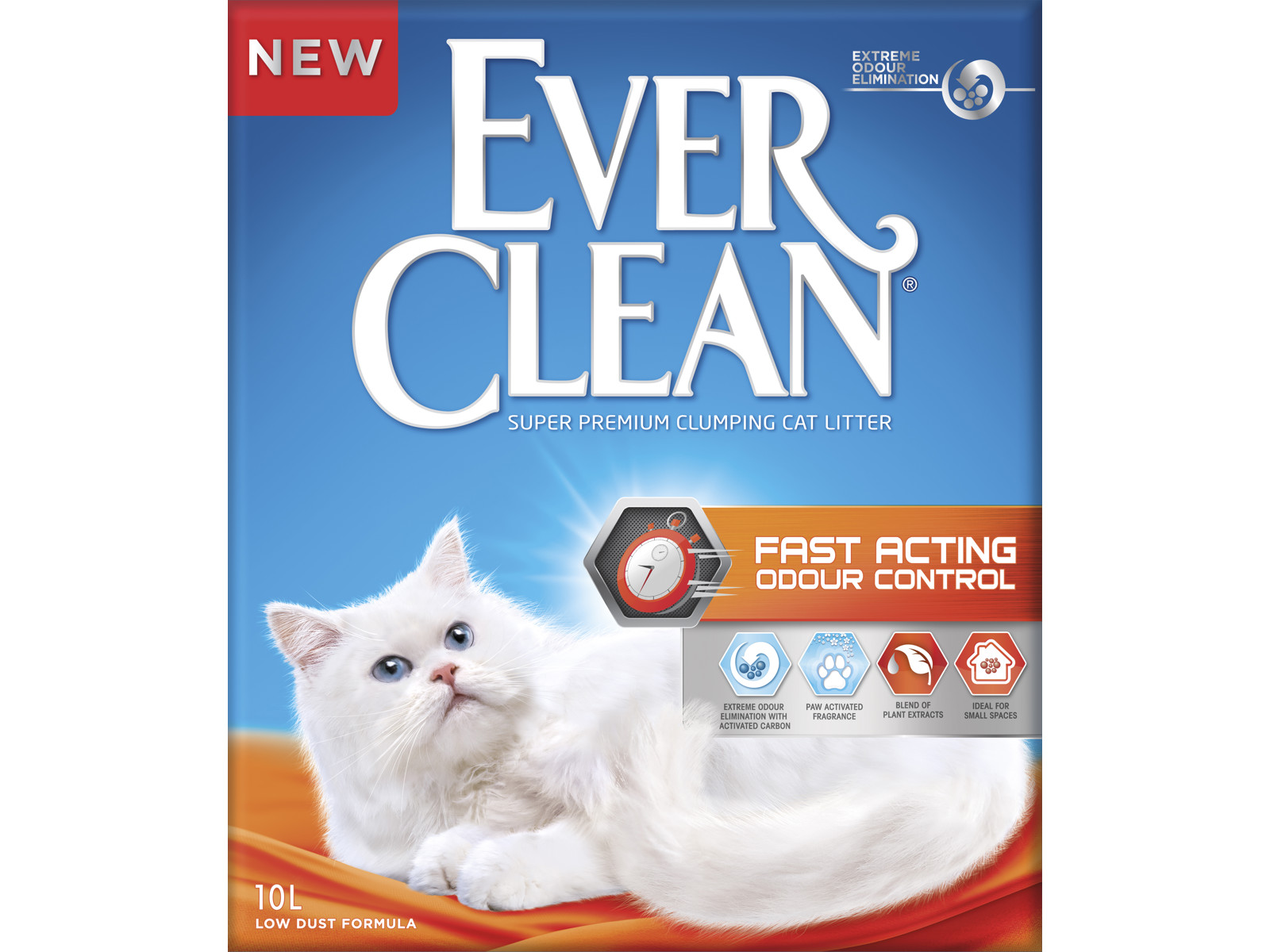 Fast Acting er.det helt nye kattesand fra producenten Ever Clean. Det virker ekstremt hurtigt og effektivt når det kommer i kontakt med fugt. Dette er en fordel hvis du bor i en lille lejlighed, og ikke har mulighed for at gemme kattebakken af vejen. Kattesandet indeholder en naturlig blanding af urter fra eukalyptus, rosmarin og basilikum.