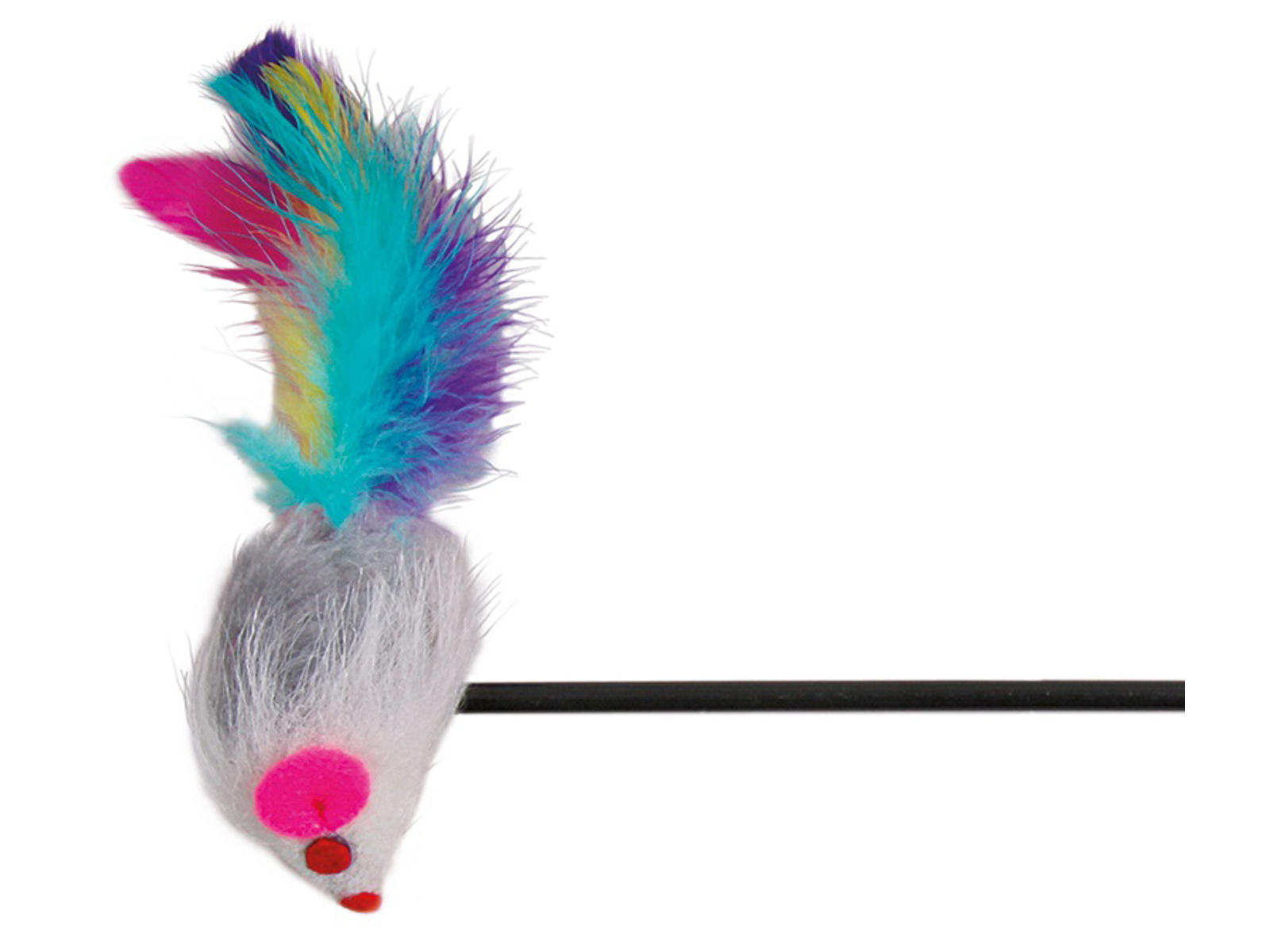 Drillepind med plys mus og fjer.
