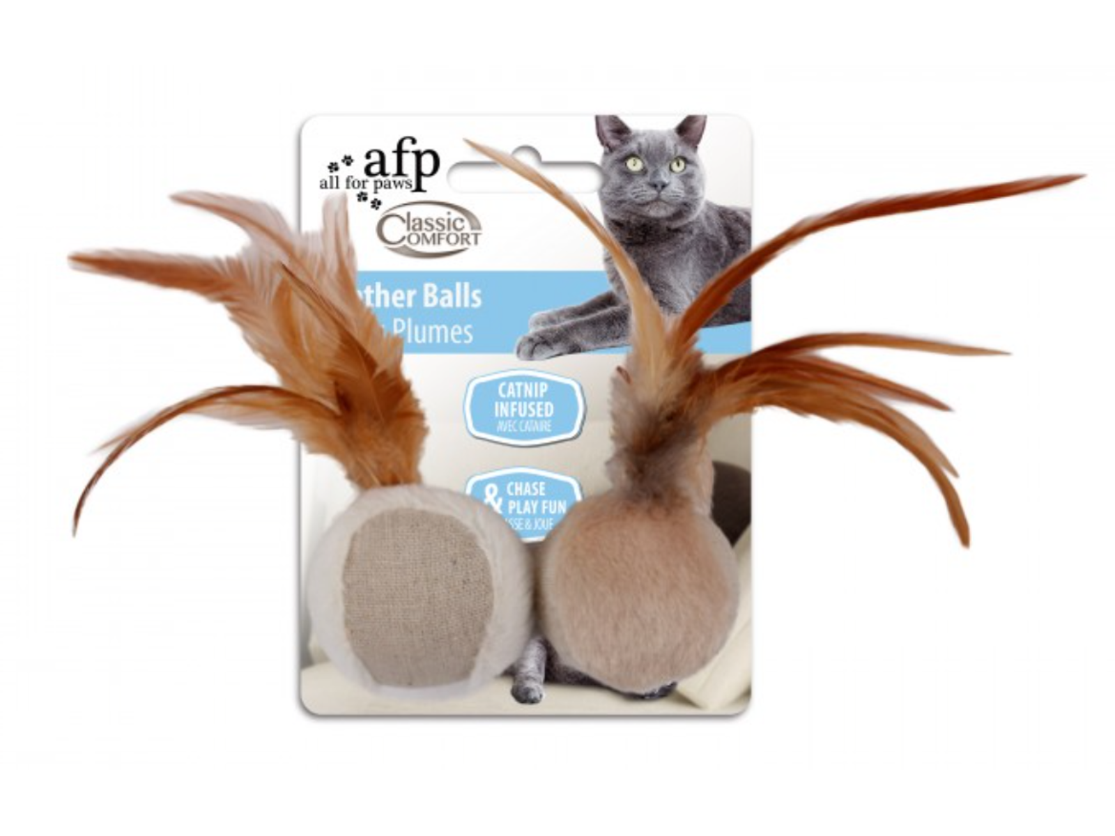 • Sjove bolde som er påført fjerd, som gør boldene aktiverer det naturlige instinkt hos katten når der leges med blodene.