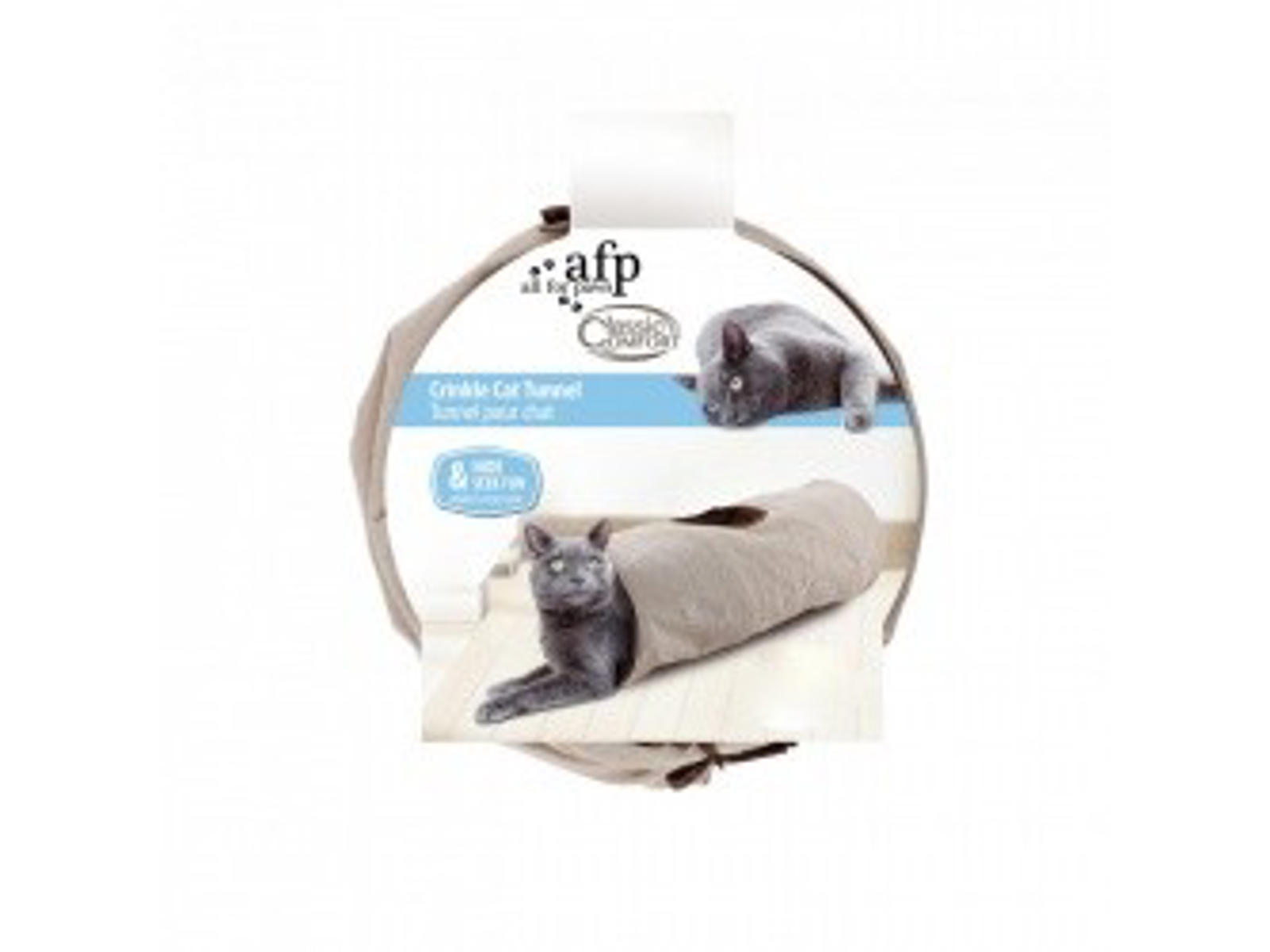Denne beige canvas crinkle kattetunnel med varmt plys indeni, er et godt sted for din kat at gemme sig og lege.