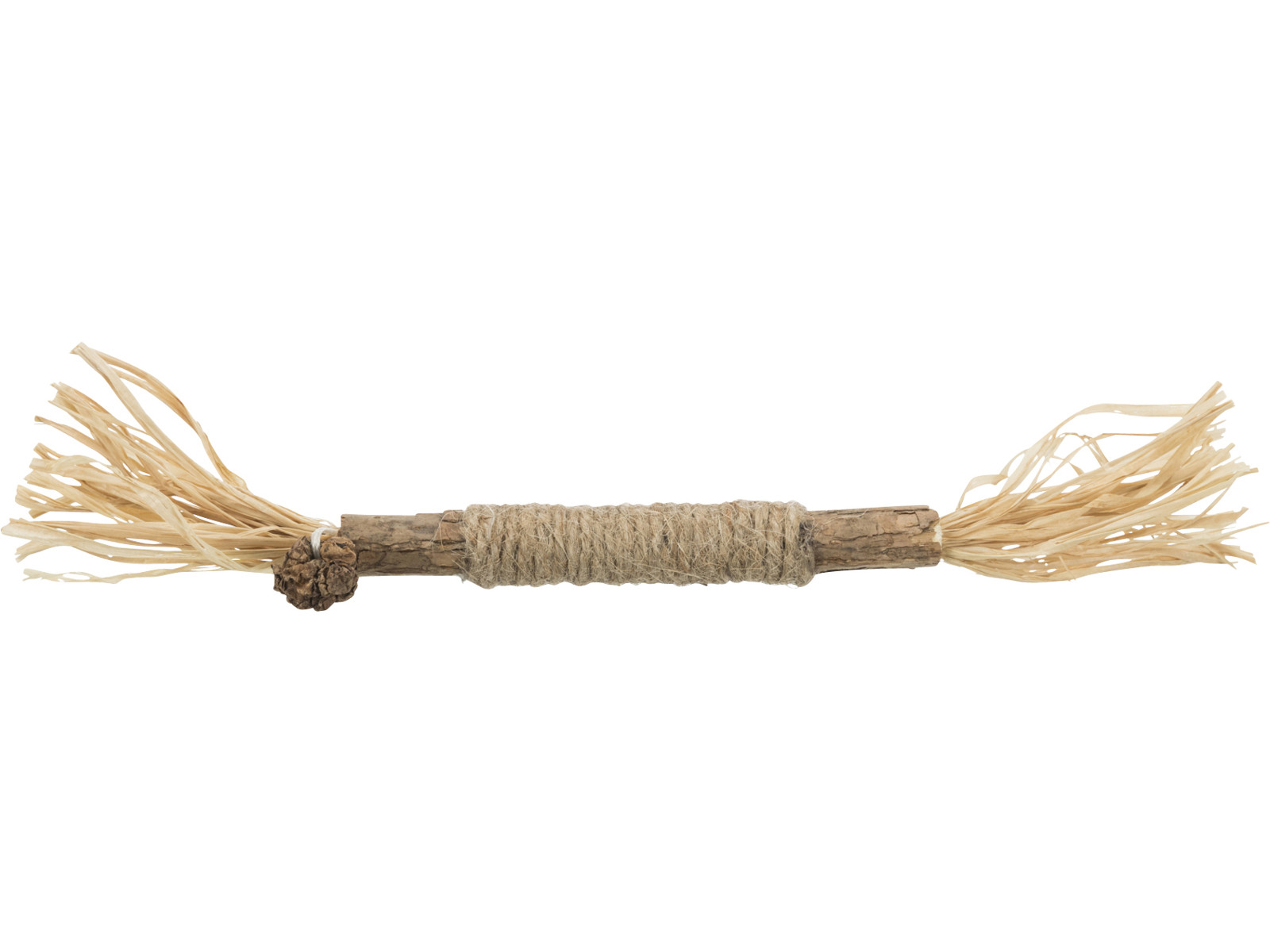 • Med denne naturlige legetøjspind fra Trixie kan du aktivere din kat gennem leg. Du kan være med til at stimulere din kat ved at bevæge pinden, så kvasterne i begge ender fanger kattens opmærksomhed. Din kat kan også få glæde af legetøjet, når den er alene. Matatabi har en lignende effekt som katteurt og virker særligt tiltrækkende på katte. Derfor er der lagt op til langtidsbeskæftigelse. Det er et godt stykke legetøj for din kats klør og tænder. Især rebet som er snoet rundt om legetøjet er godt for kattens klør at kradse i.