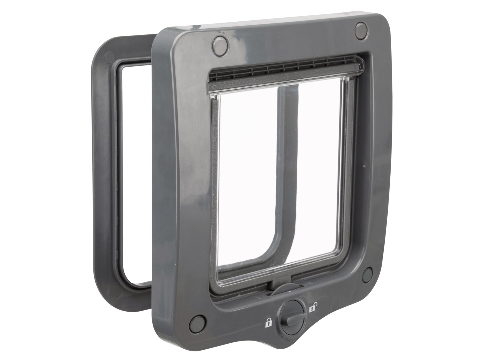 Uden problemer forlader eller besøger din kat hjemmet med en 2-Vejs Kattelem fra Trixie. Du kan selv indstille kattelemmen til at være åben eller lukket med en lås på lemmen, der er en effektiv metode til at holde strejfende katte væk fra dit hus. De uvelkomne gæster bliver i stedet mødt af en sølvgrå kattelem med en gennemsigtig flap, som fungerer ligesom et vindue. Så enten kan en kat ikke komme ind, men kun ud eller omvendt.