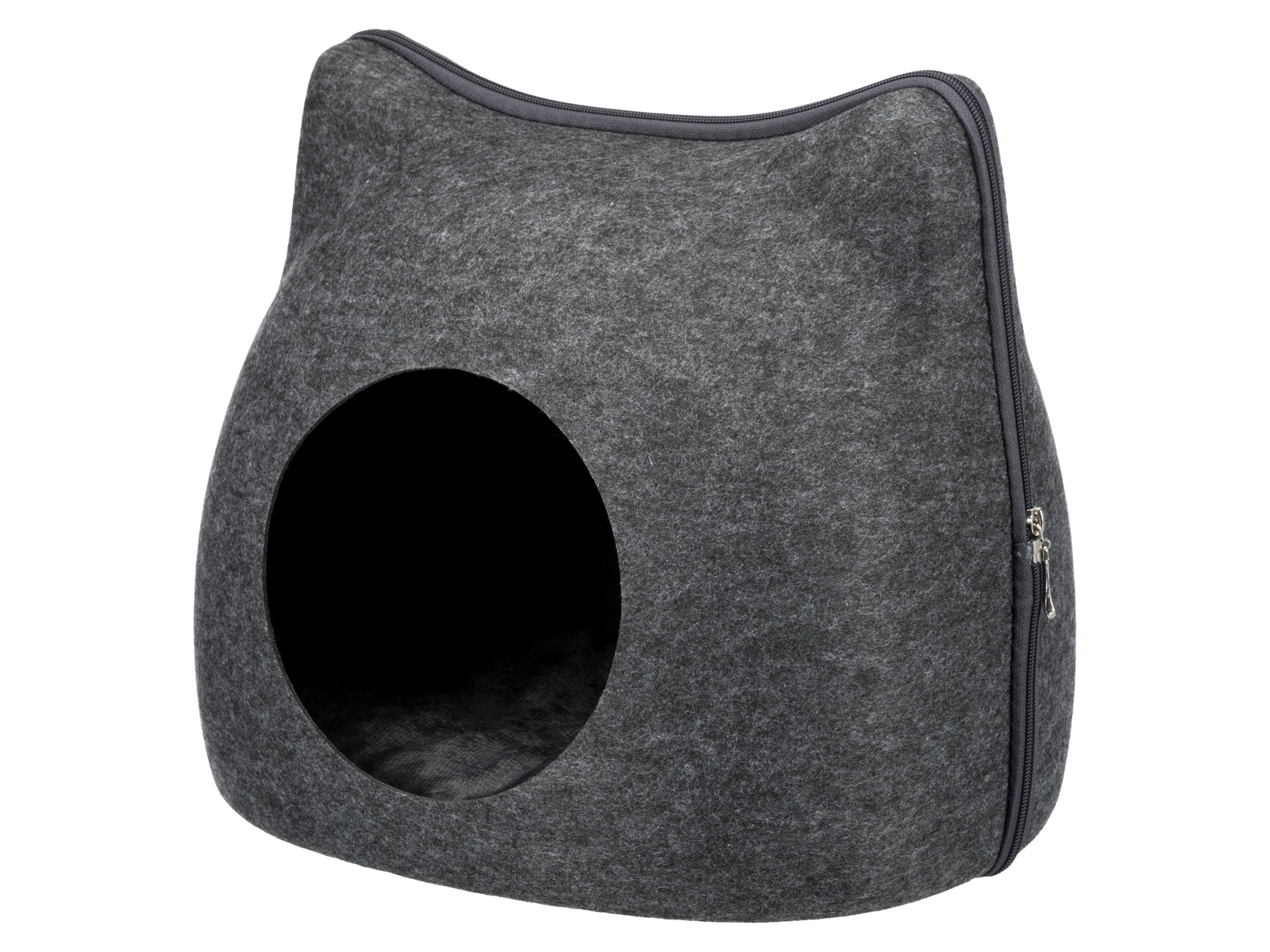 • Denne super søde hyggehule fra Trixie har et flot og rustikt look, der gør, at den vil passe ind i alle hjem. Hulen er udstyret med en lynlås hele vejen rund, der forbinder de to dele med hinanden. Dette giver din kat mulighed for at bruge den som en hule eller som en skal, den kan lægge sig ind i.