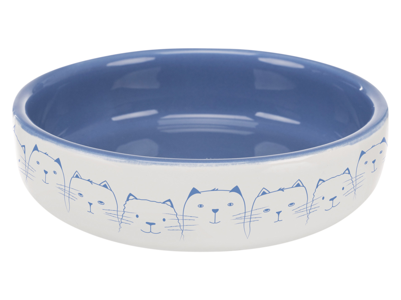 Trixie Keramik Katteskål er til alle katte. Skålen fremstilles i keramik og herefter glaseres skålen for øget robusthed. Skålen kommer i en flot lyseblå eller en stilren sort farve, hvor mange små katte enten sidder rundt om skålen eller nede i skålen her fra Trixie. Teksten "Hello my little cat" byder din kat velkommen hver dag.
