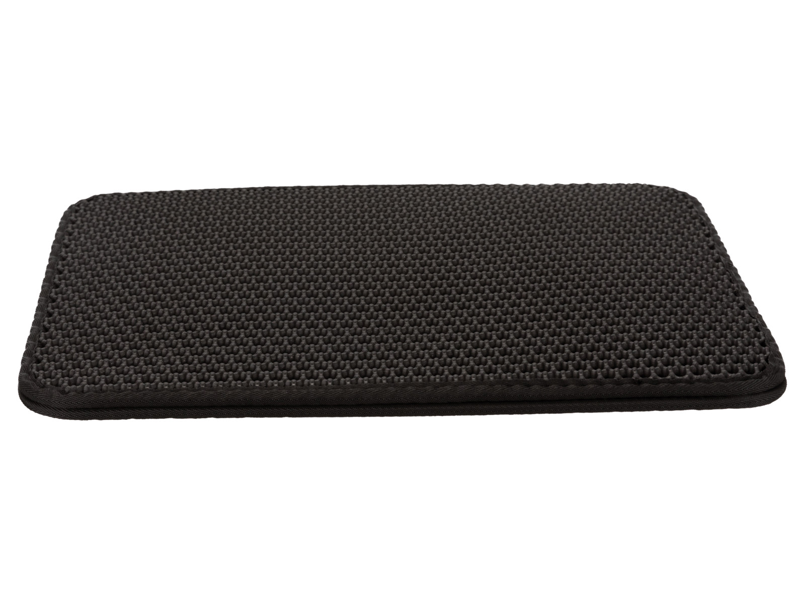 Trixie Grusmåtte er en elegant og blød måtte i farven sort. Grusmåtten er lavet i EVA, der er en slags formbevarende plastik. Måttens farve og design gør desuden, at den matcher boligindretningen i langt de fleste hjem.
