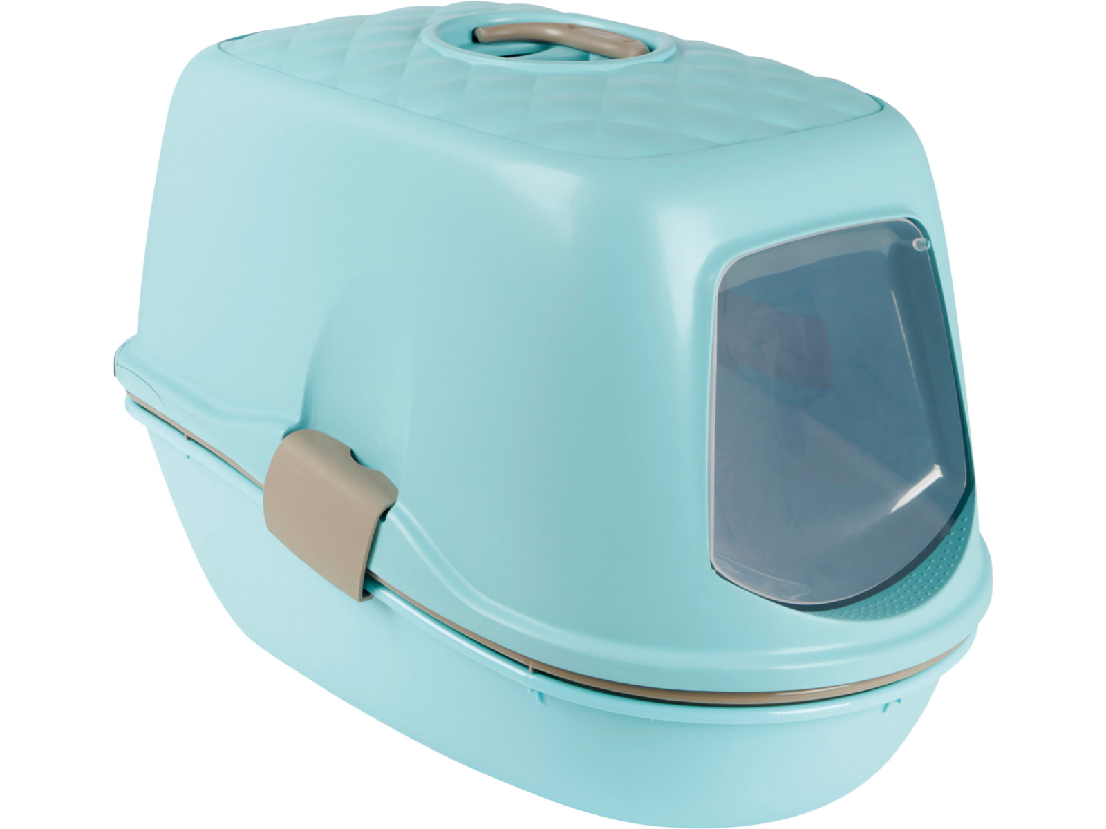 • Dette kattetoilet fra Trixie er af mærket Berto Top Litter. Kattetoilettet har højt til loftet, så der er plads til større katte og der er også en dejlig bred og dyb bund, der gør det muligt, at lægge ekstra meget kattegrus i. De fleste katte kan jo fra naturens side godt finde på at grave deres afføring ned. Med i købet får du to bunde, en si, et låg, indbygget kulfilter, fine håndtag og klik-låse.