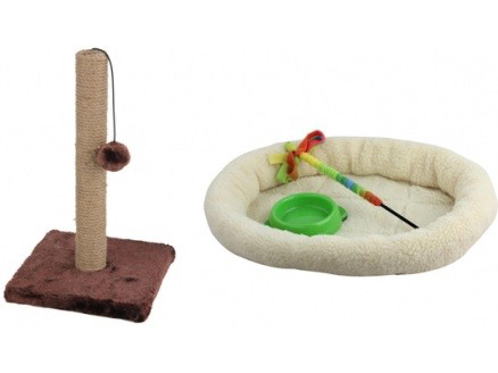 Med et blødt sted at sove, sjov aktivering og praktisk foderskål får du både funktionalitet og komfort samlet i ét sæt – perfekt som velkomstpakke til den nye killing.