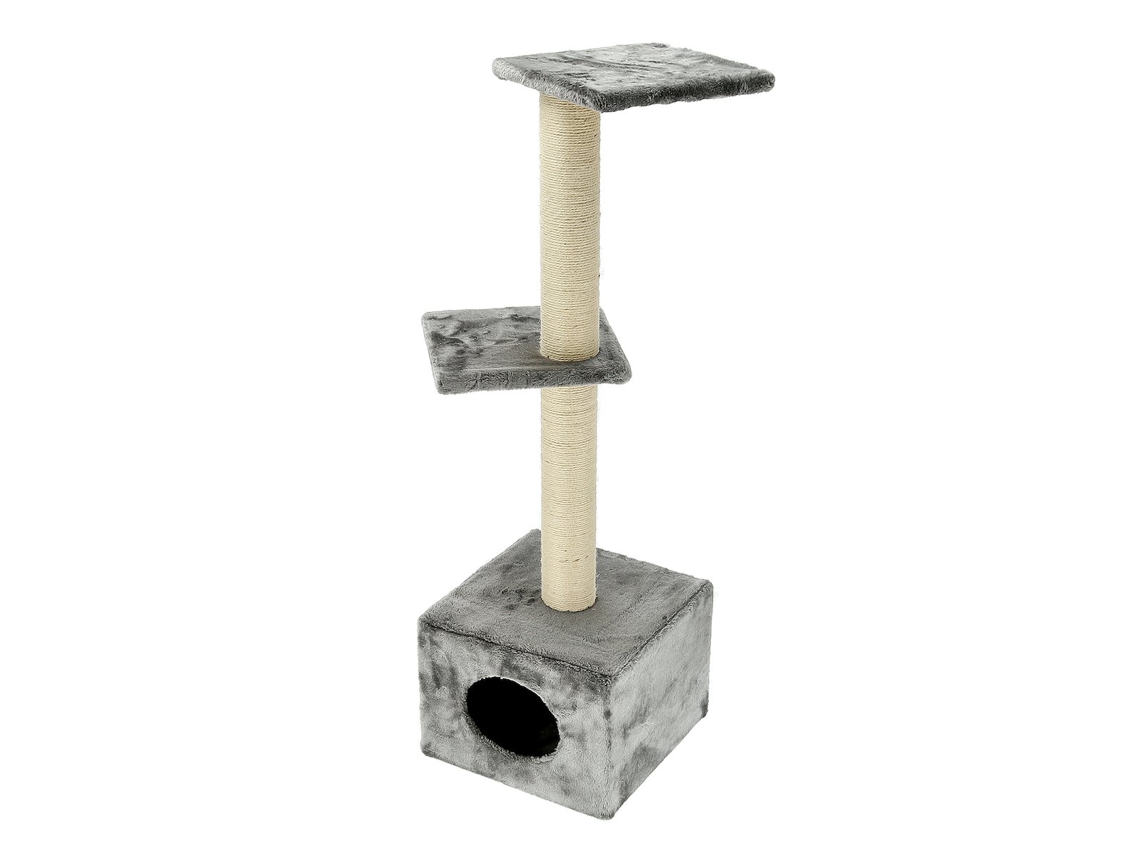 Konstruktionen er bygget på en stabil base på 37 x 37 cm, der sikrer god balance, selv når katten springer fra platform til platform. Kradsetræets stammer er omviklet med slidstærkt sisal, som effektivt imødekommer kattens naturlige behov for at kradse og holde kløerne ved lige.