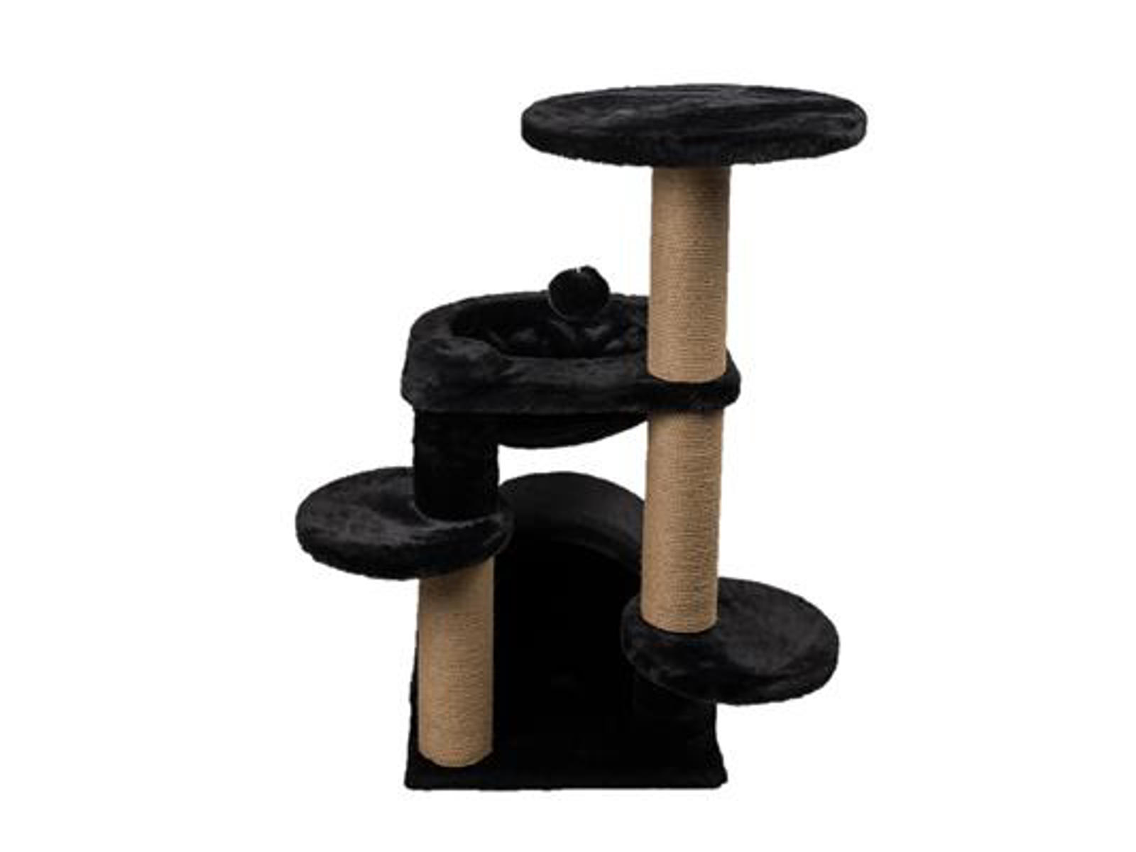 Kradsetræets robuste konstruktion sikrer stabilitet og holdbarhed, mens det bløde plys materiale sikrer komfort for din kat. Den sorte farve tilføjer et stilfuldt touch til ethvert rum, og det kompakte design passer perfekt selv i mindre rum.