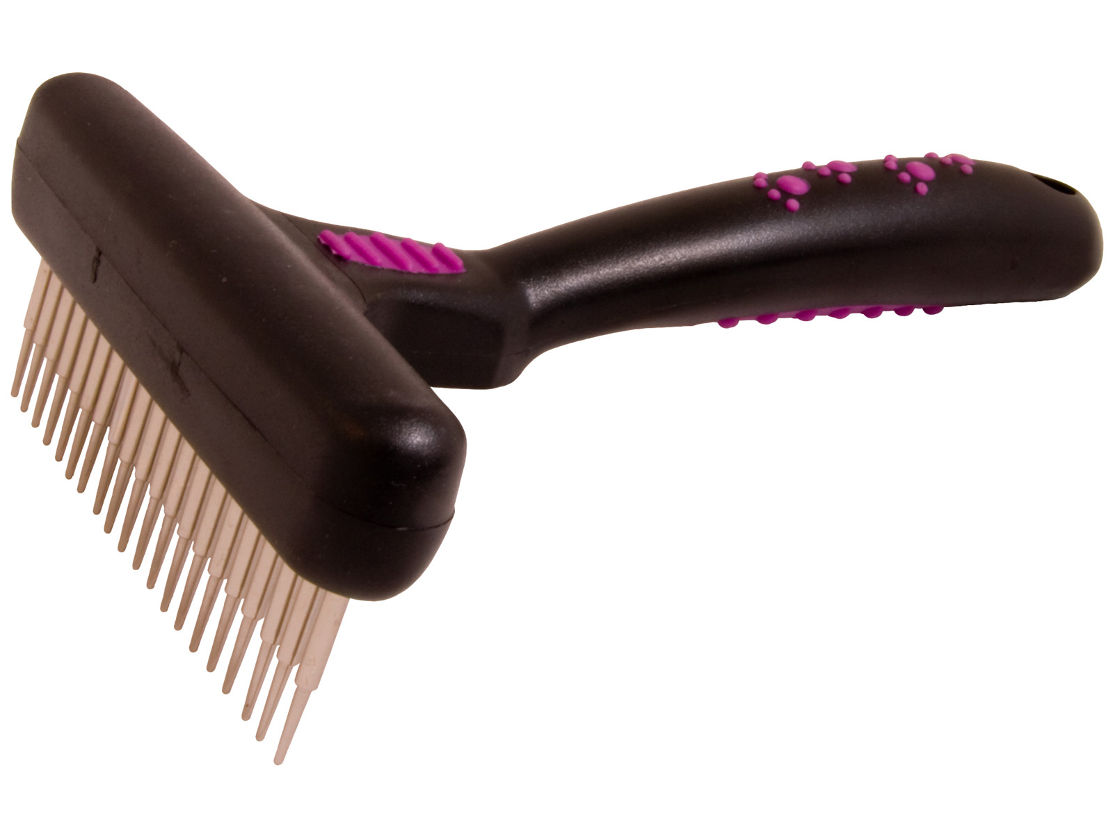KW Smart Flexibel Strigle m. Rulletænder anvendes til udredning af racer med lang eller mellemlang pels og underuld. De fleksible rulletænder former sig efter kroppen og KW Smart Flexibel Strigle fjerner den løse underuld uden at skade dækhårene og huden. Samtidig fjerner den filtrer og sørger for at der kommer luft til pels og hud.