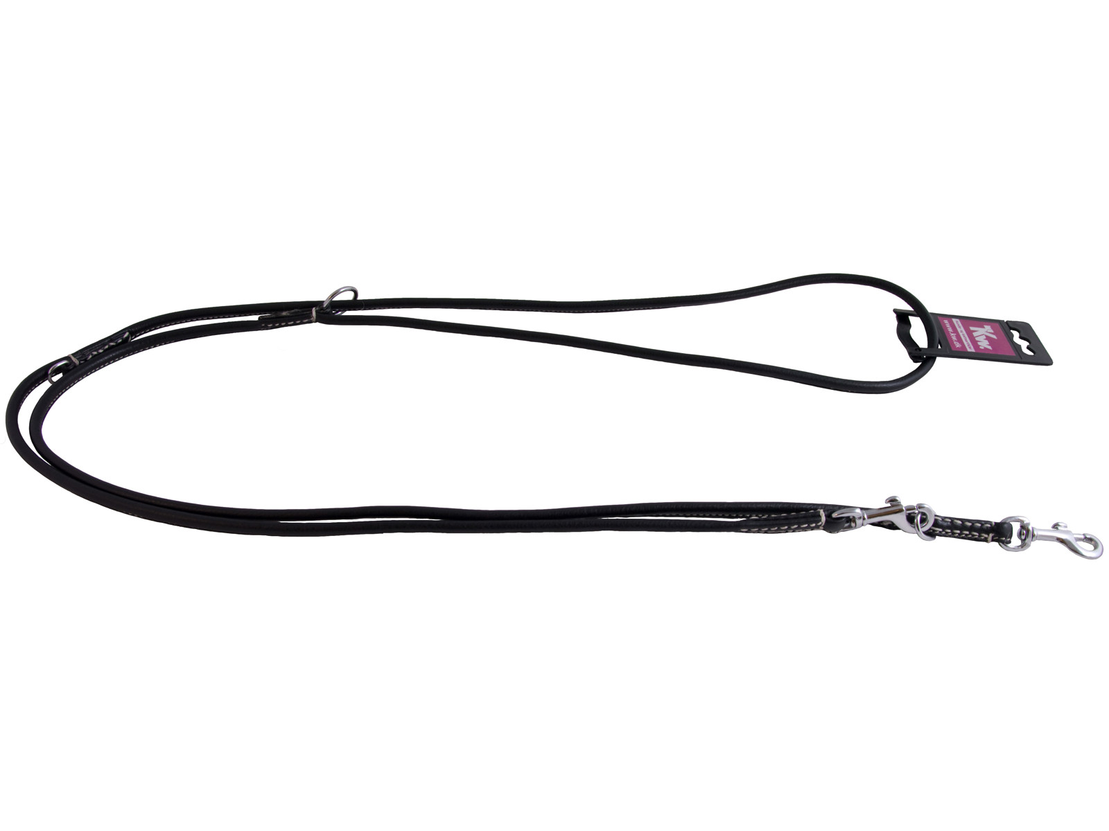 Rundsyet lædersnor i lækker kvalitet. Dressurlinen kan justeres.