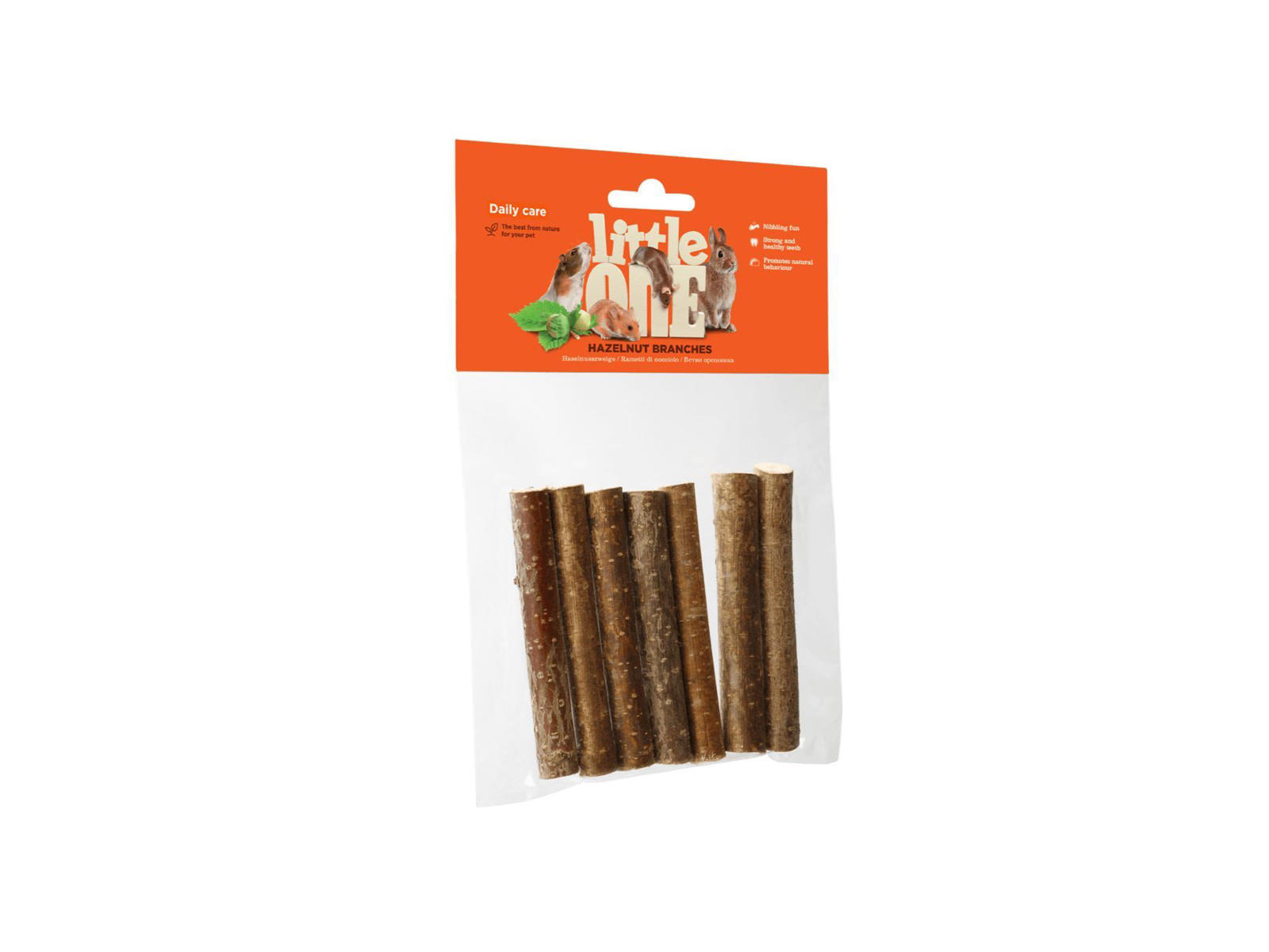 Hasselnøddegrene fra Little One er det naturlige værktøj til at slibe tænder ned på gnavere og kaniner. Mens de gnaver hasselgrenen, får dyrene den nødvendige tandpleje, og det hjælper desuden med at holde dem beskæftiget i nogen tid.