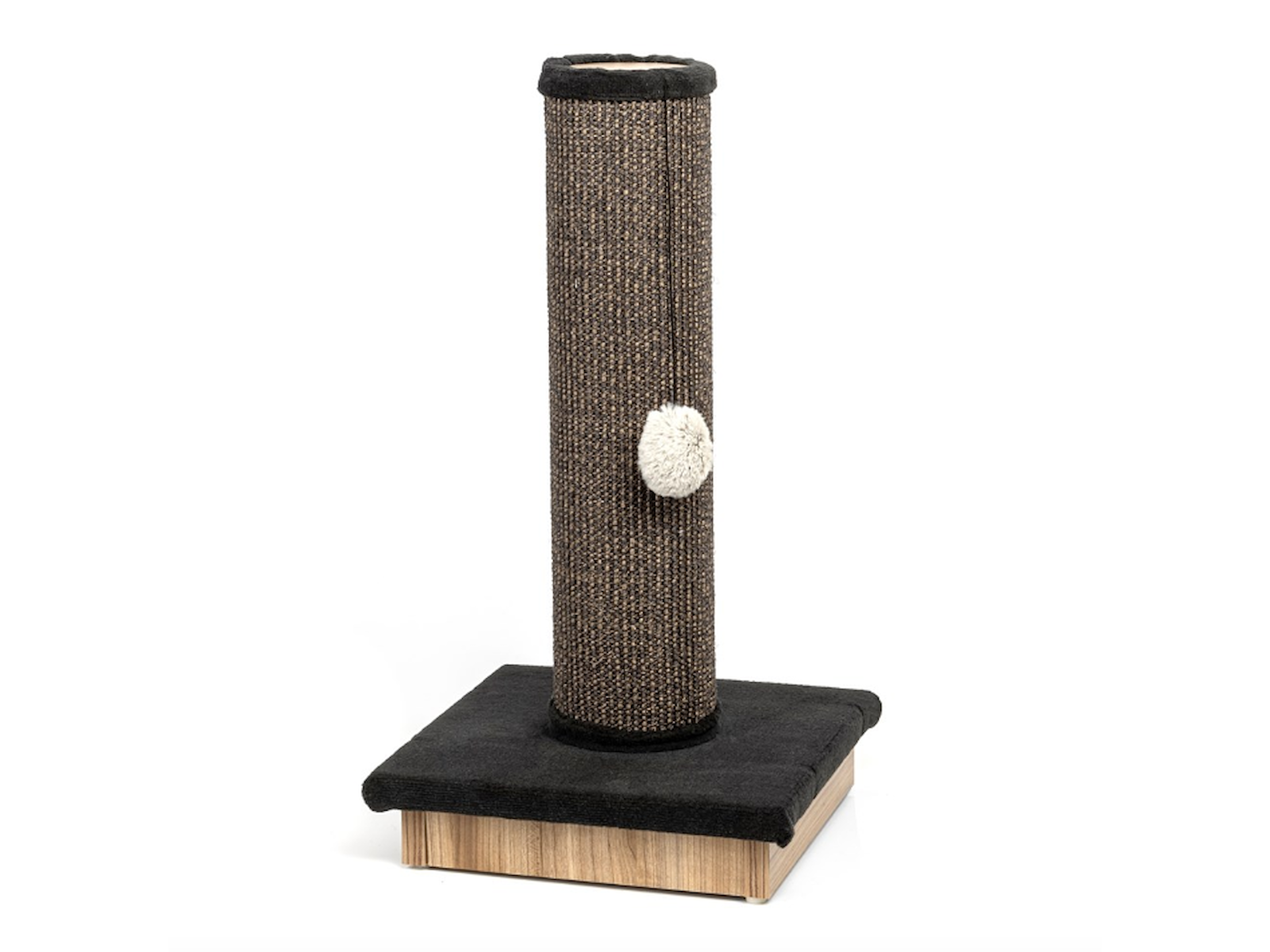 Kradsetræets robuste søjle har en diameter på hele 12 cm, hvilket giver katten en ekstra bred kradseflade sammenlignet med mange andre produkter i samme størrelse. Den solide bund i møbelplade er udstyret med glidere, så du nemt kan flytte møblet og holde området rent. En blød, hængende bold i reb tilføjer leg og aktivering til kradsetræets funktioner.