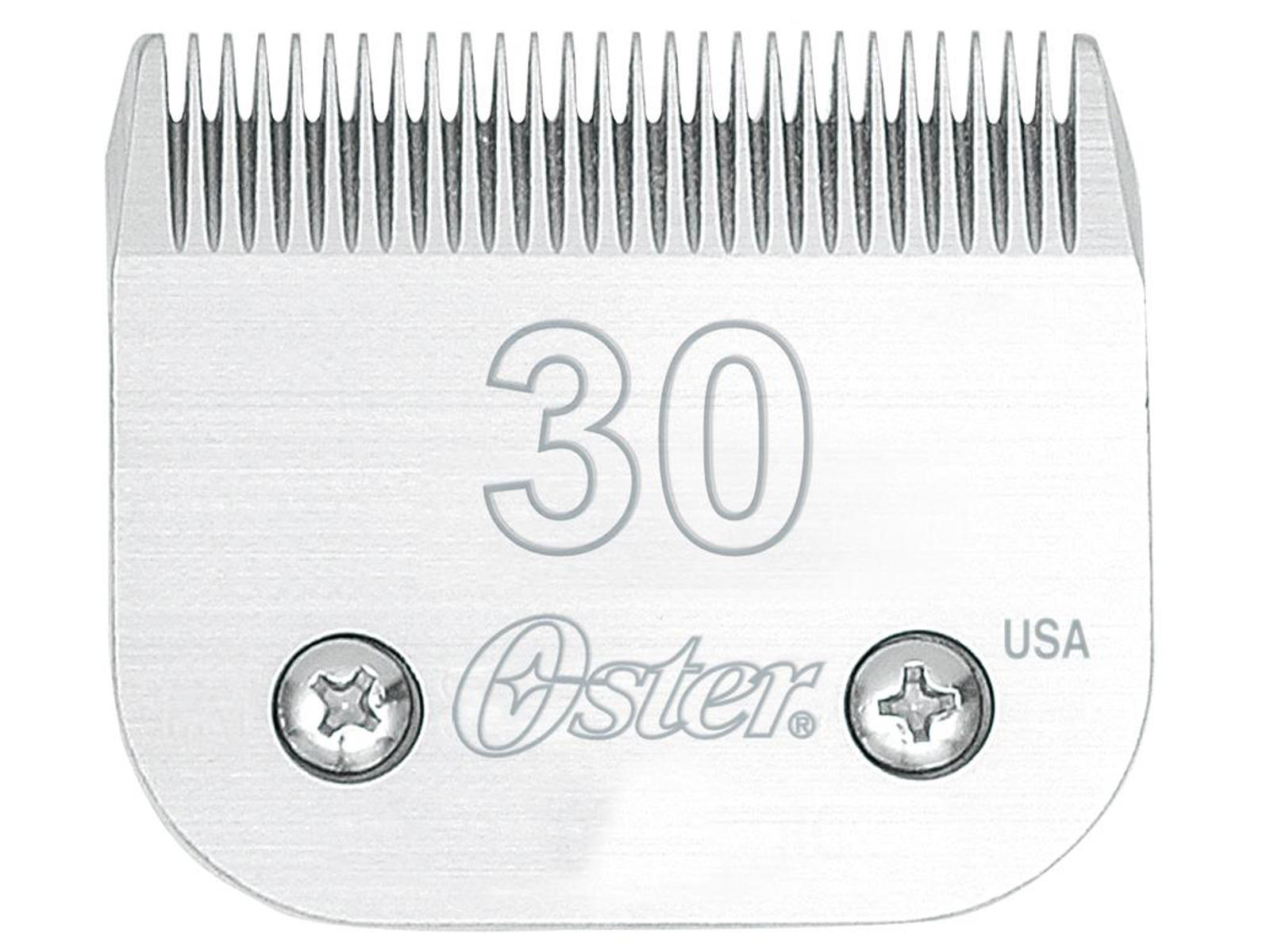 • Osters skær 30 er fremstillet af det fineste kulstofstål, som giver præcis klipning og stor ydeevne. Alle skær fra Oster er desuden kendetegnet ved at de har fået kryogenbehandling. Kryogenbehandling er en helt speciel behandling, som sikrer slidstærke skær og forlænger skærenes levetid markant set i forhold til andre skær. Derudover er du med den kryogene behandling også fri for, at skærene bliver meget varme i brug. I gennemsnit forbliver Osters skær 15 grader køligere end andre skær.