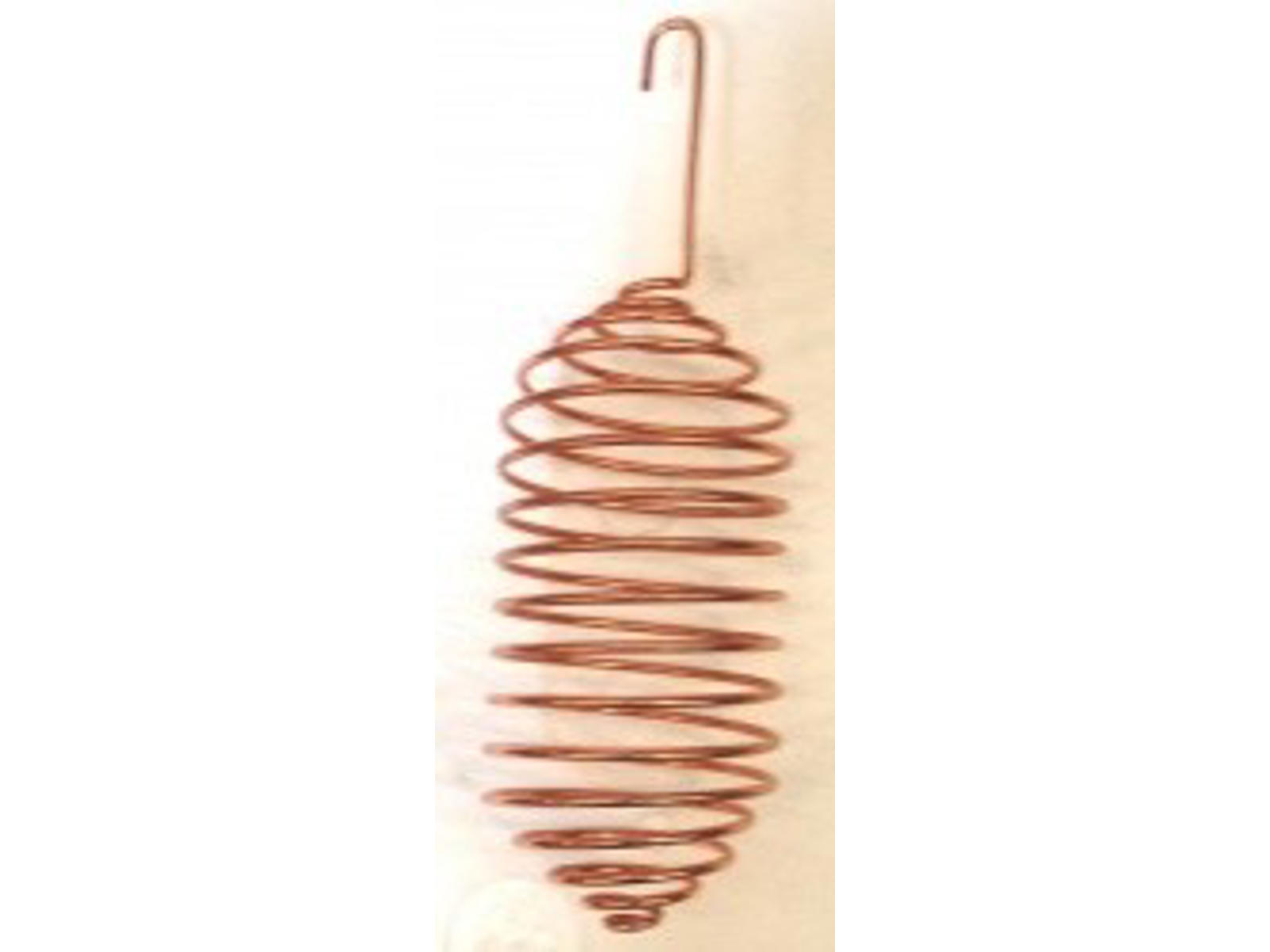 Foderspiral til mejsebolde i kobber er en dekorativ og praktisk løsning til ophængning af mejsebolde i haven, på terrassen eller altanen. Spiralen holder mejsebolden sikkert på plads og giver havens vilde fugle nem adgang til energirig føde året rundt.