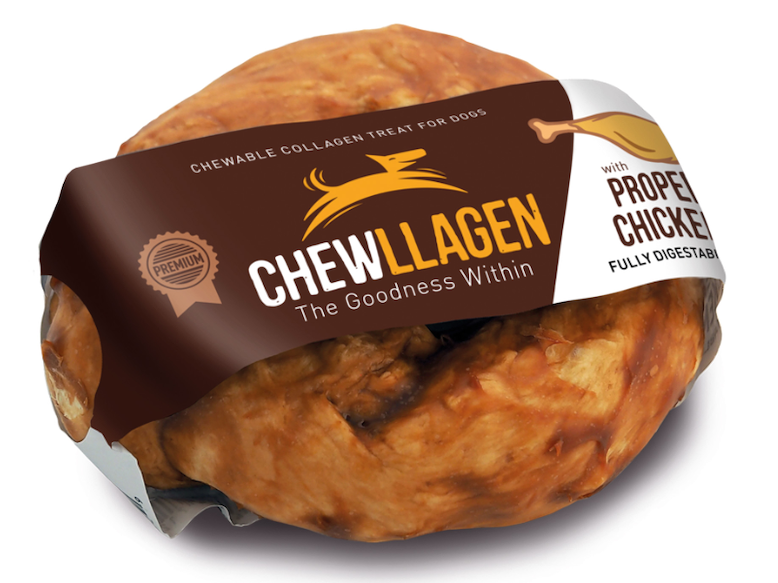 Chewllagen Tyggeben er et smagfuldt og funktionelt hundesnack fremstillet af 100 % naturligt kollagen og overtrukket med lækker kyllingesauce. Det er et eksklusivt premiumprodukt fra Sydamerika, der kombinerer velsmag med funktionel ernæring – ideelt til hunde i alle størrelser.