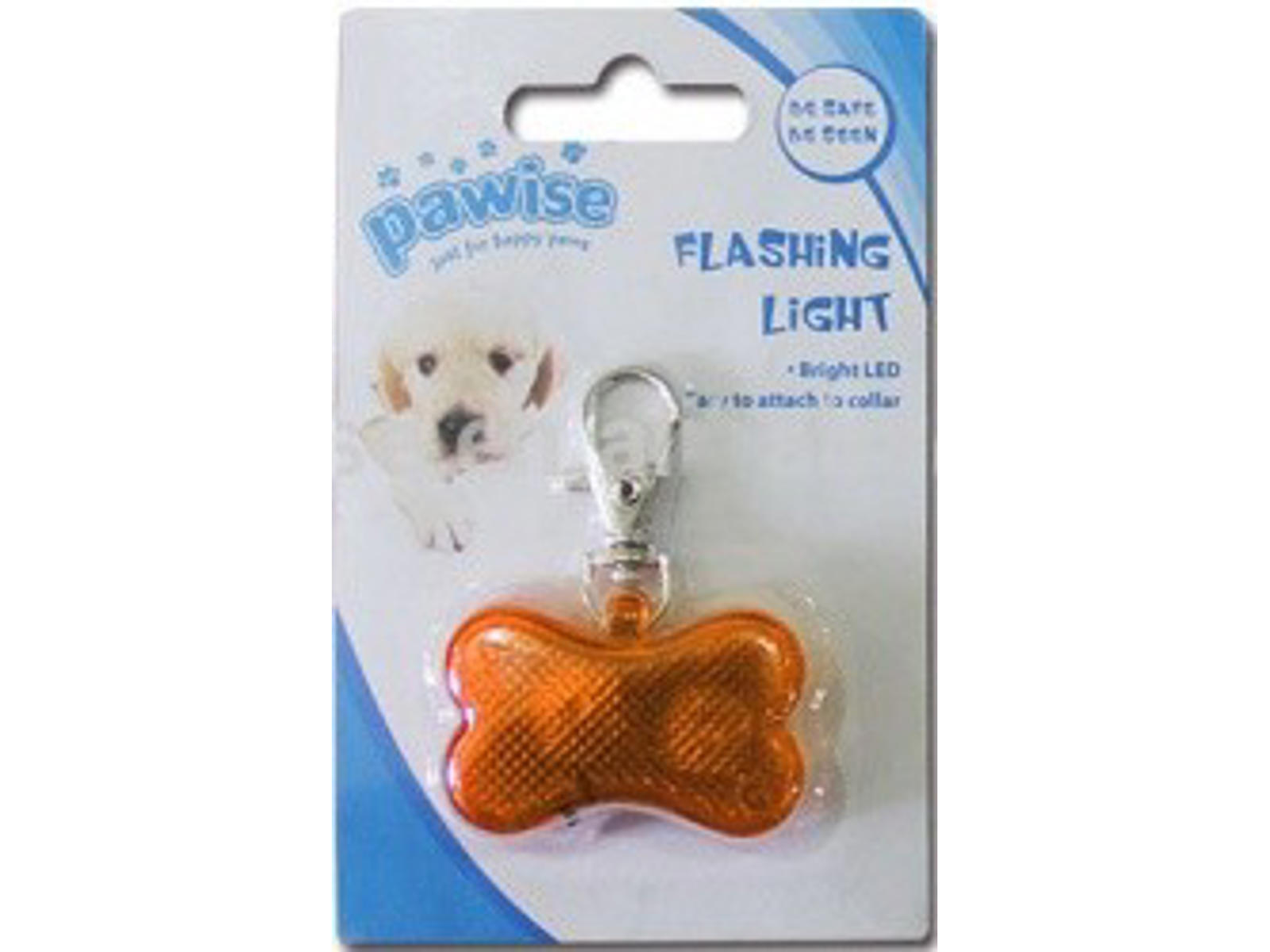 Safety light ben, giver lys således dit kæledyr er til at se i bybilledet og sikre at billister og andre gående kan se der kommer noget gående.Safety light er formet som værende et hundeben.