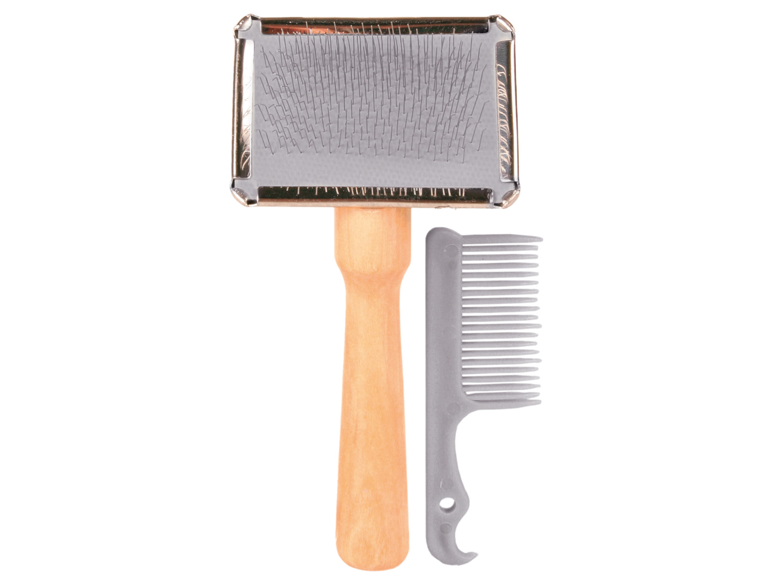 Blødbørstemedet træskaft. Børstehovedeter lavetafrustfritstål. Denblødebørsteervelegnettil at fjerne underuld. Den beskytterunderulden og forhindrer den i at blive sammenfiltrede. Løseellerdødehårfjernes nemt, og filtring kan undgås. Børsterenserhjælper med atrensebørstenhurtigtog nemt.