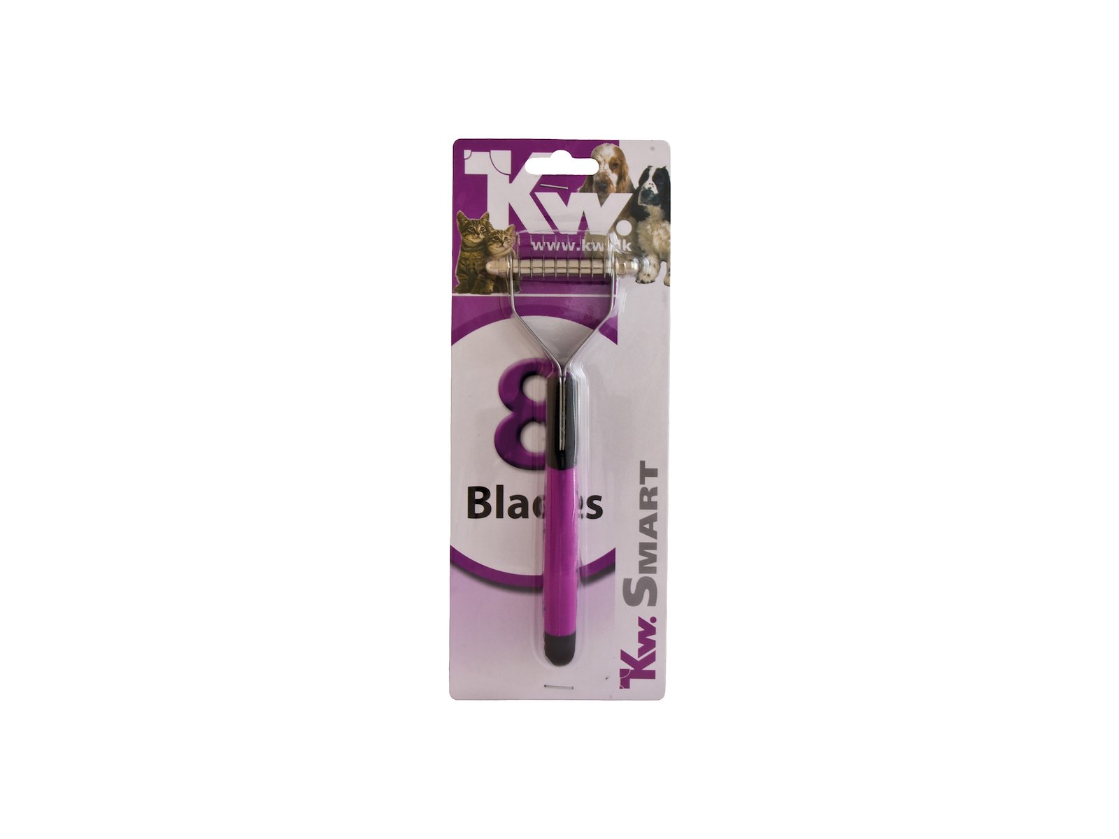 • KW Smart Blade 8 er en effektiv og professionel udredningskniv, udviklet til skånsom fjernelse af underuld, filtre og løse hår i hundens pels. Redskabet er særligt velegnet til hunde med tæt, lang eller kraftig pels, hvor almindelige børster og kamme ofte ikke er tilstrækkelige.