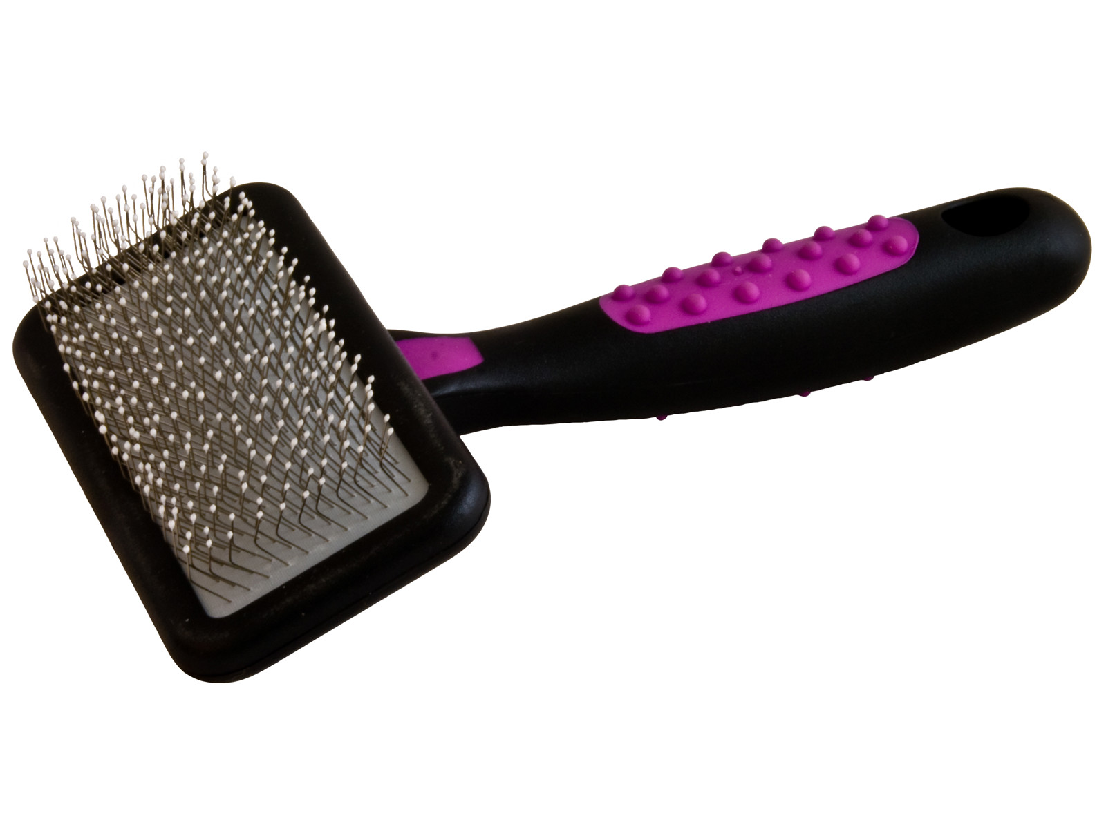 • Blød karte med dupper, som kan anvedes til hunde med lang pels eller ruhår. Dubberne gør friseringen meget nænsom.