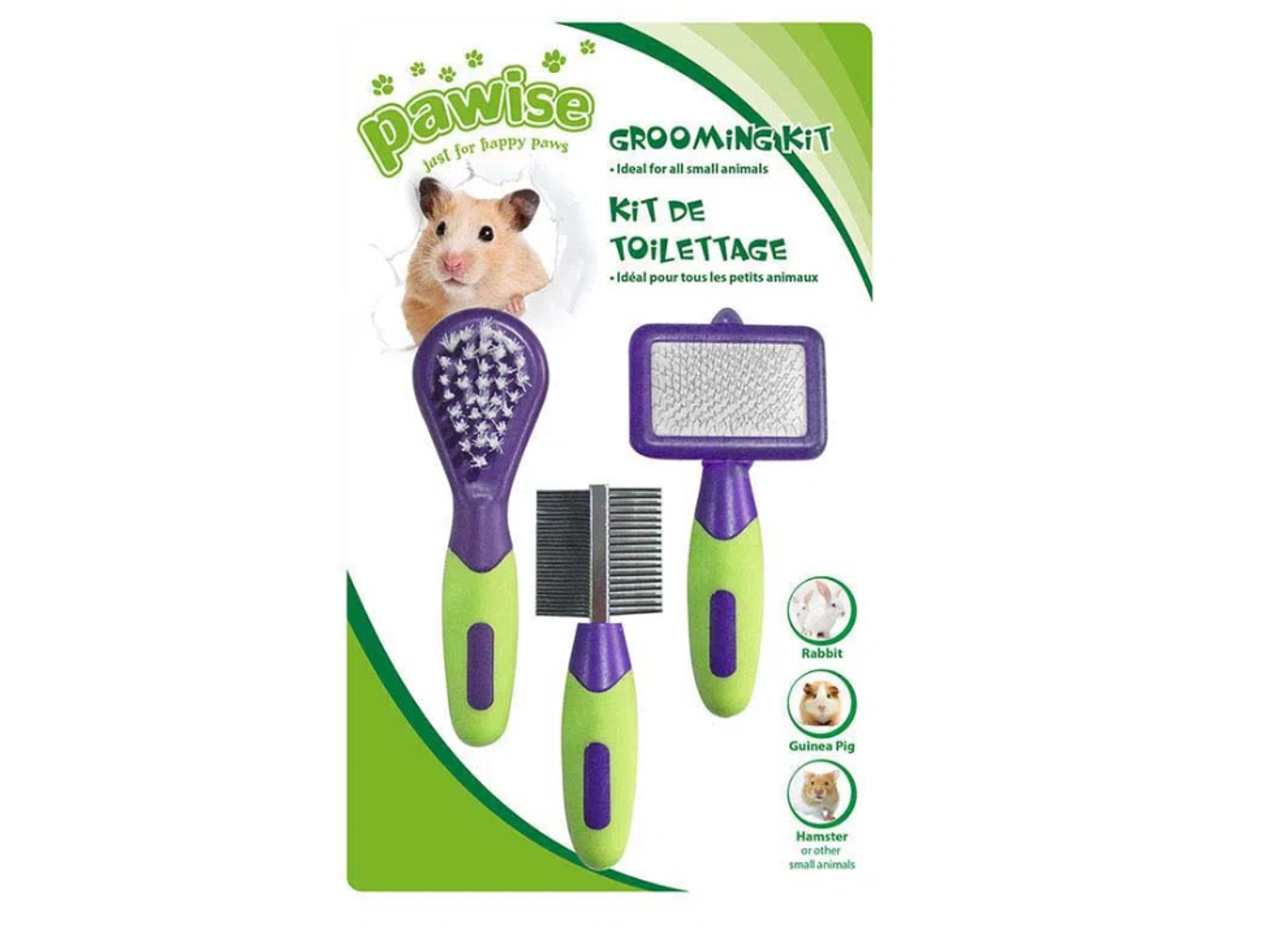 Et hygiejnesæt til kaniner & gnavere fra pawise som indeholder en kam og to forskellige børster.