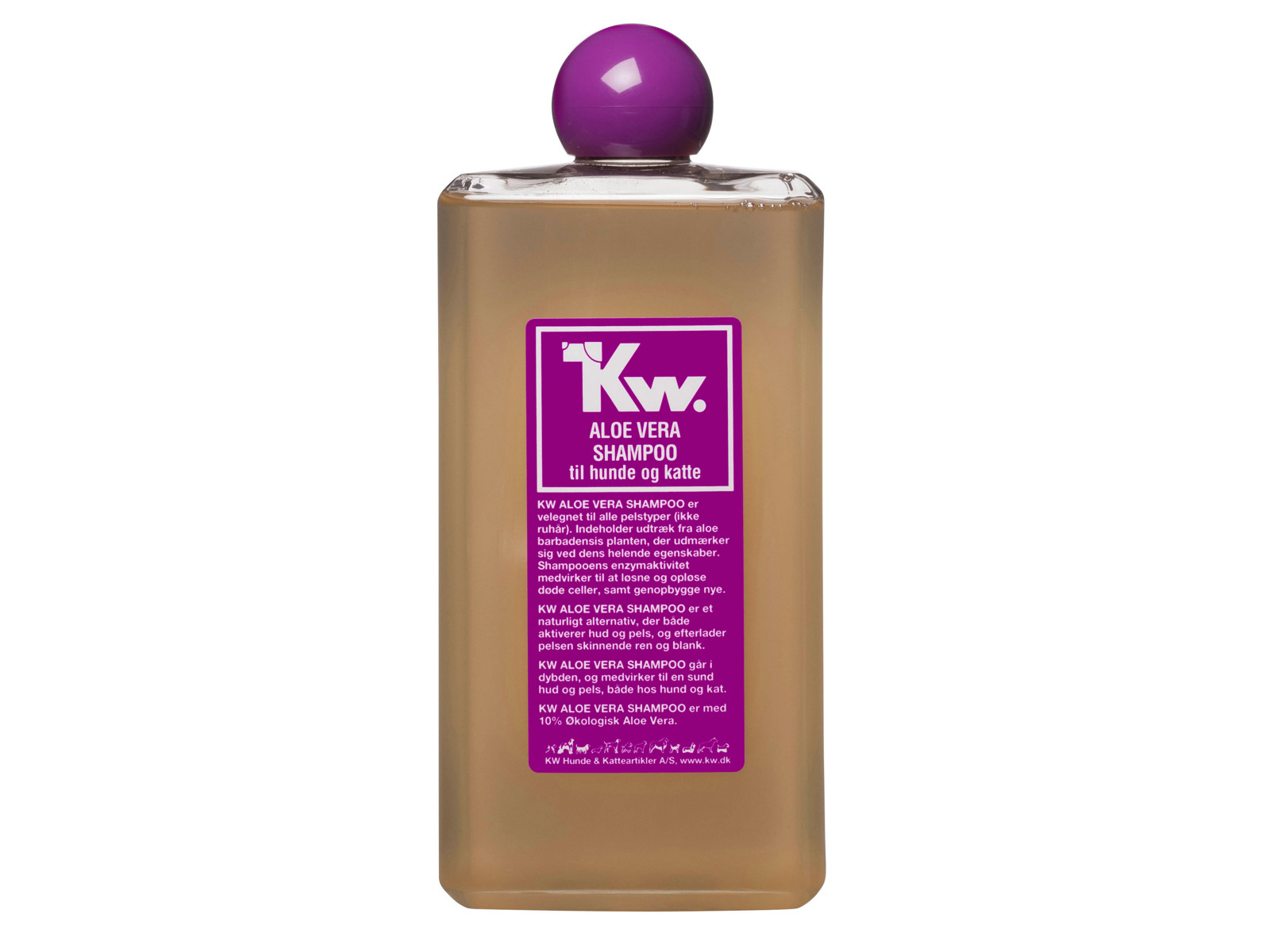 KW ALOE VERA SHAMPOO er velegnet til alle pelstyper (ikke ruhår). Indeholder udtræk fra aloe barbadensis planten, der udmærker sig ved dens helende egenskaber. Shampooens enzymaktivitet medvirker til at løsne og opløse døde celler, samt genopbygge nye.