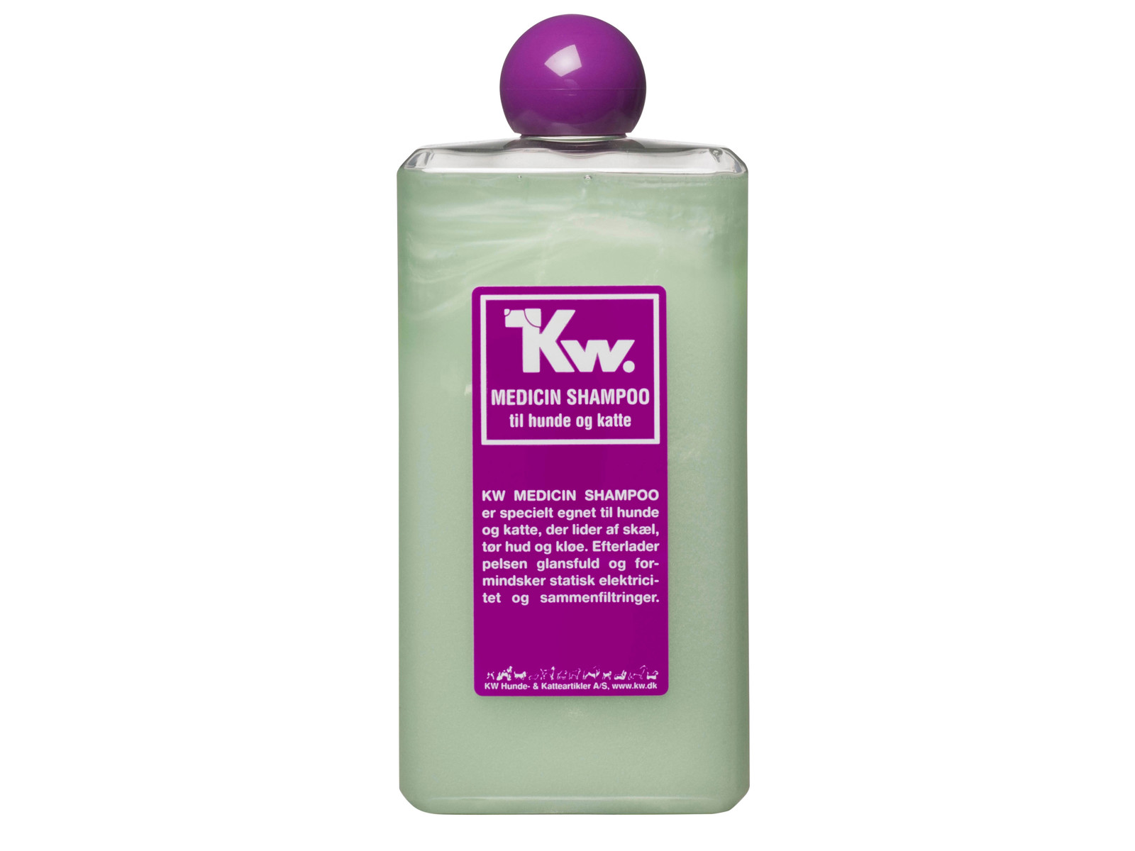 KW MEDICIN SHAMPOO er specielt egnet til hunde og katte, der lider af skæl, tør hud og kløe. Efterlader pelsen glansfuld og formindsker statisk elektricitet og sammenfiltringer.