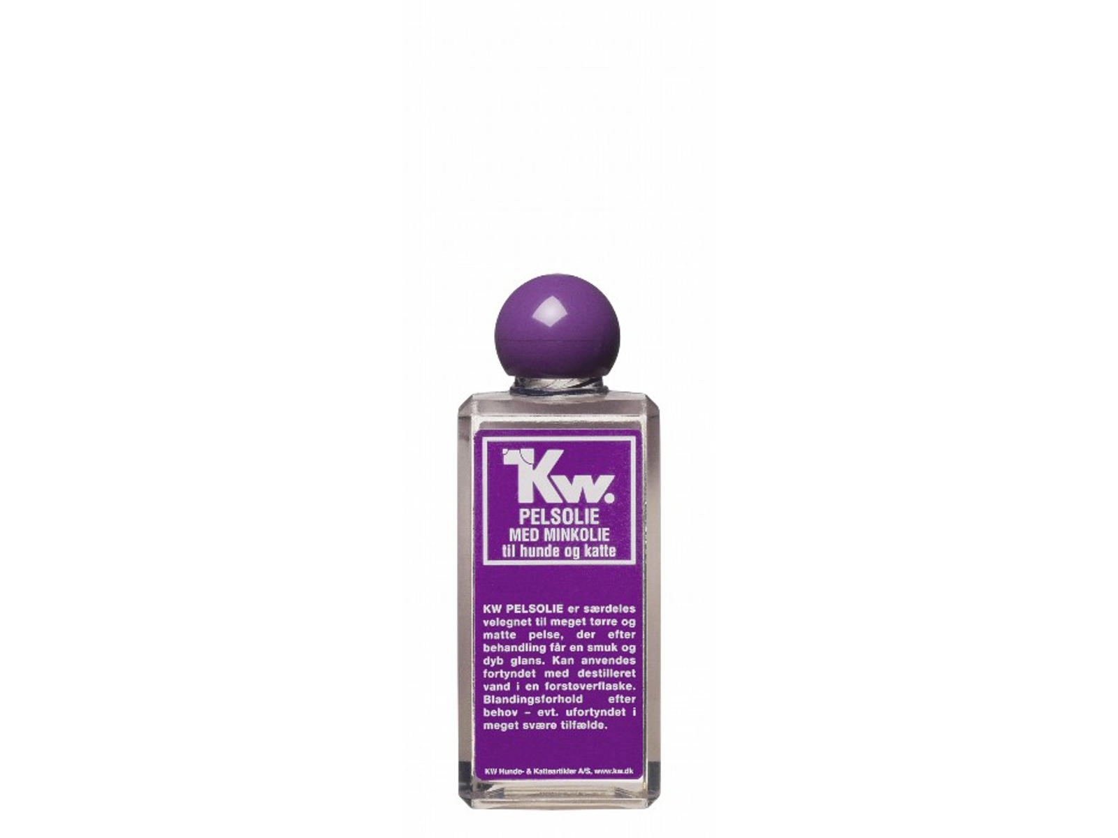 KW PELSOLIE er særdeles velegnet til meget tørre og matte pelse, der efter behandling får en smuk og dyb glans. Kan anvendes fortyndet med destilleret vand i en forstøverflaske. Blandingsforhold efter behov – evt. ufortyndet i meget svære tilfælde.