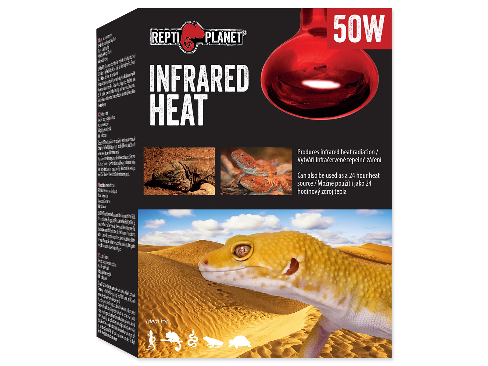 Pære REPTI PLANET Infrarød varme skaber infrarød varmestråling og er ideel i kombination med lys og UVB-pærer (for eksempel Repti Planet Daylight Basking Spot, Daylight Frosted, Daylight Neodymium, Repti UVB) eller LED-lys. Lys farve opnås gennem rødt glas.
