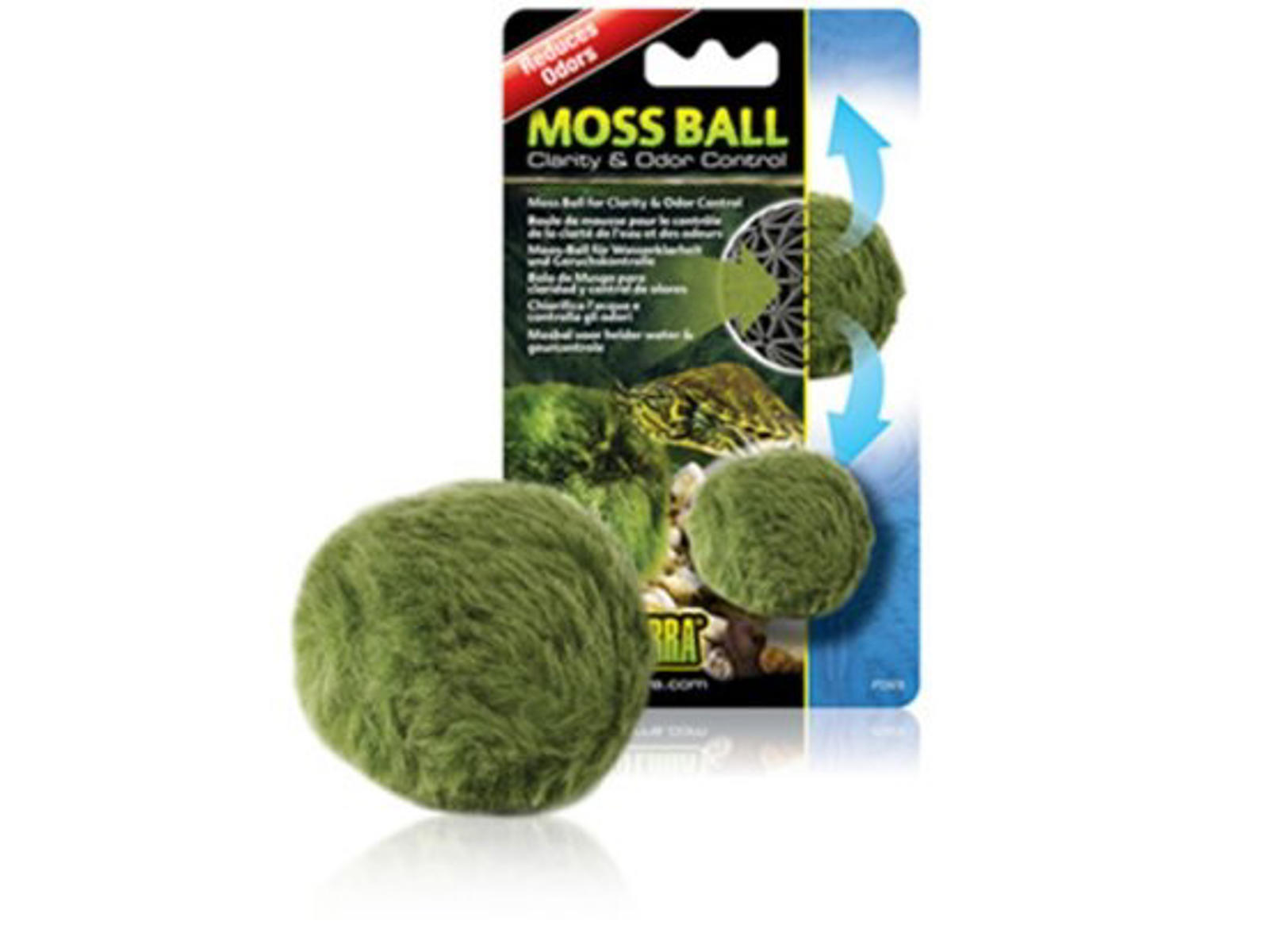 Realistisk syntetisk mosbold Ø4 cm fra Exo Terra. Bevarer fugt og bidrager til stabil luftfugtighed i terrarier – vedligeholdelsesfri og hygiejnisk.