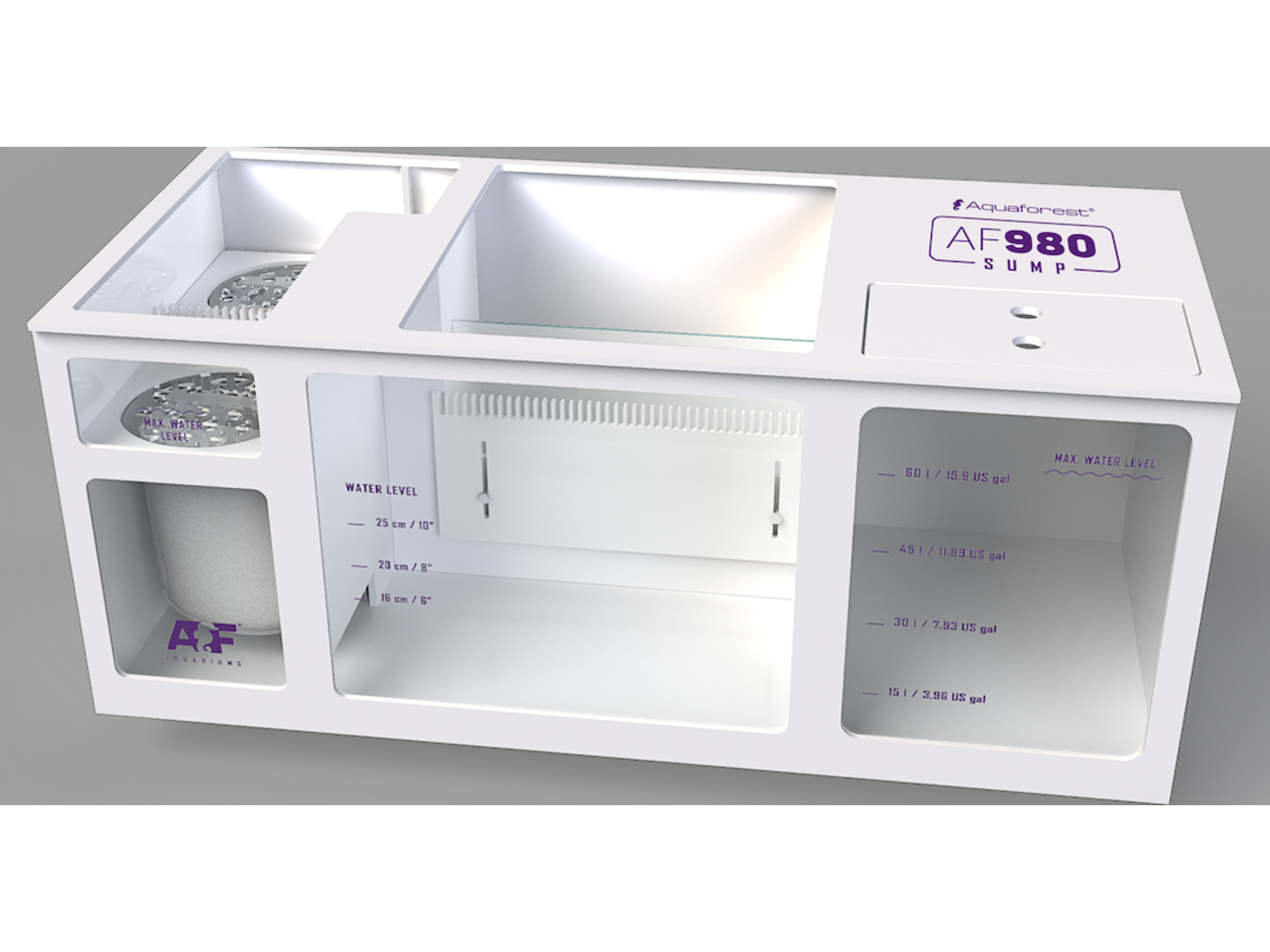 Meget holdbare PVC-sumpe dedikeret til alle marine akvarier. Disse sumpe designet af erfarne akvarister sikrer den mest effektive filtrering for at få koraller til at trives og vokse sundt. Kaskadekamre kombineret med kvalitetskamme giver perfekte betingelser for dynamisk, men stadig ultra støjsvag vandstrøm. Filtreringsstrømpekammer gør det muligt at placere to sokker (inkluderet i sættet) med støjdæmpende hætter eller udskifte dem med mediereaktorer.