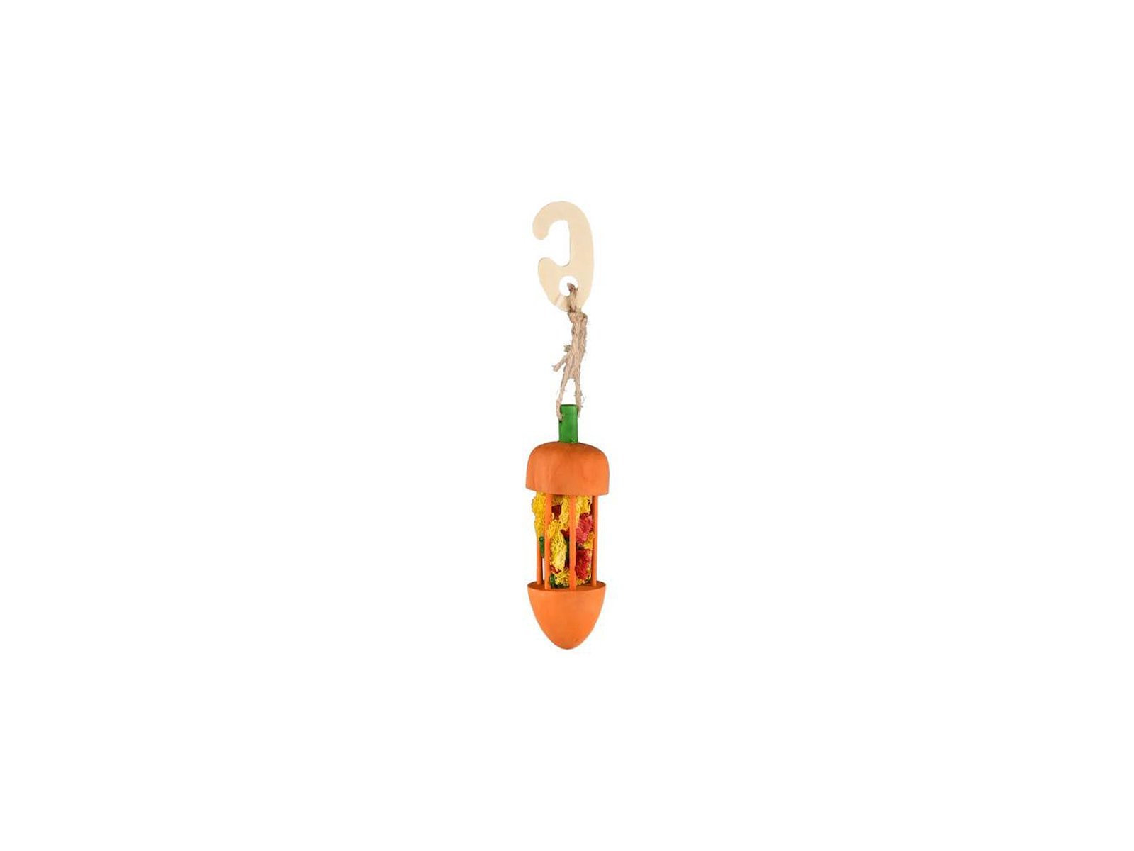 Gør dit kæledyrs bur lidt sjovere med denne hængende gulerod i naturmateriale – perfekt til kaniner, marsvin, hamstere og andre små gnavere. Legetøjet er designet til at hænge i buret og aktiverer gnaverens naturlige behov for at gnave og udforske.