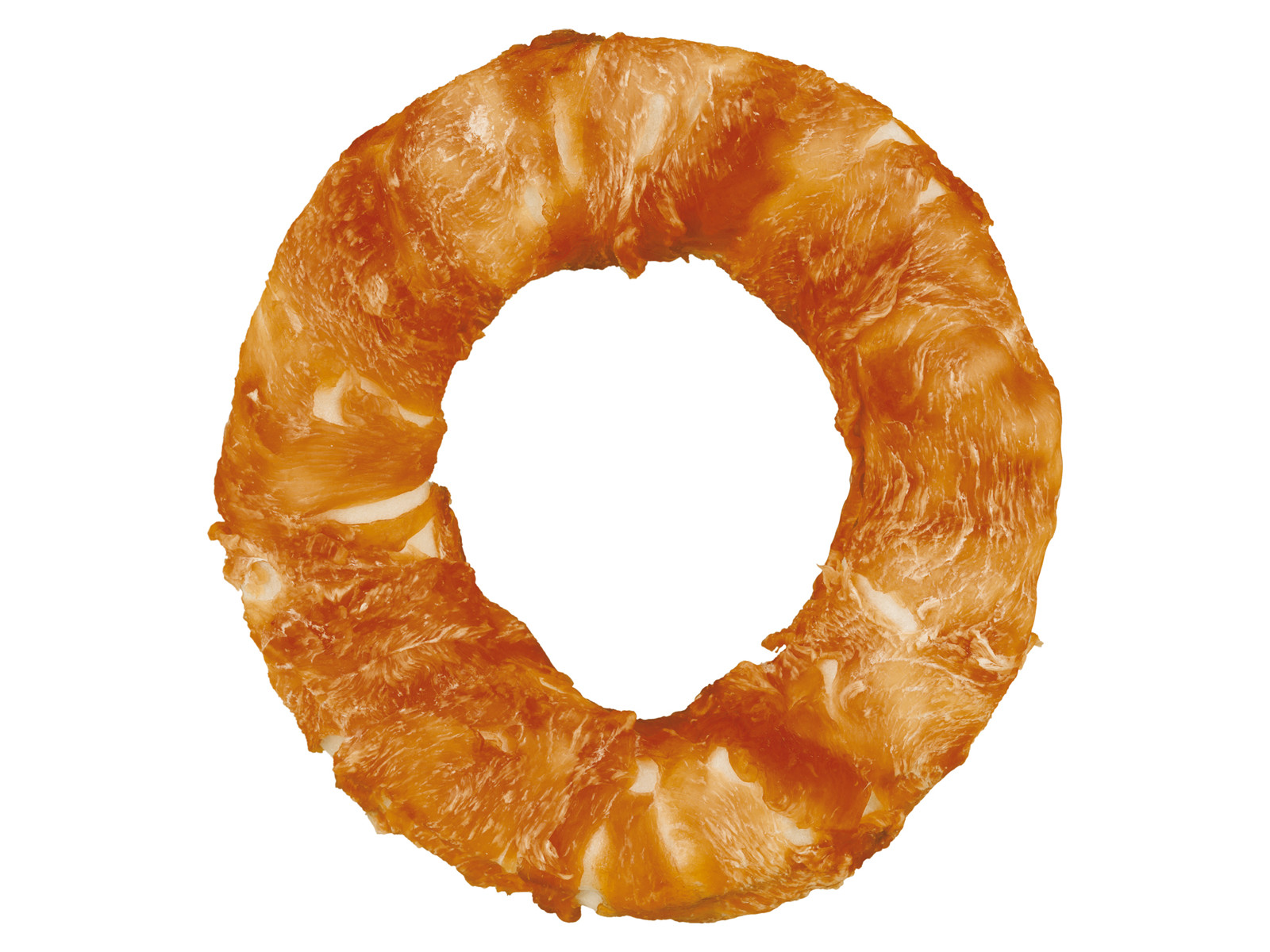 Trixie Tyggering giver din hund både en dejlig tygge- og smagsoplevelse. Den lækre ring består af en kerne af tørret oksehud, der er presset sammen til en ring, der siden er overtrukket med tørret kyllingekød. Trixie Tyggering med kylling er fyldt med protein og har en særdeles lav fedtprocent. Så mens din hund giver sig sine kæber lidt motion, tygger den på en sund og lækker snack.
