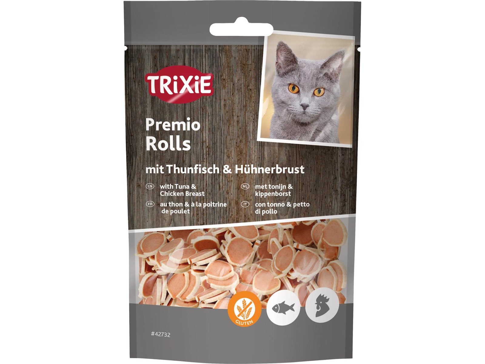 Trixie Premio Tuna Rolls er lækre og smagfulde kattegodbidder med et højt indhold af både fisk og kød. Kombinationen af tun (53 %) og kylling (30 %) giver en intens smag, som selv kræsne katte har svært ved at modstå.